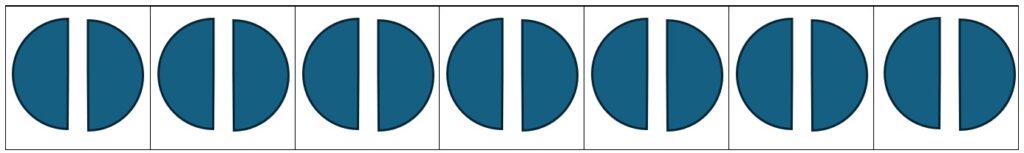 Equally, each of the seven pizzas could have been cut into two pieces. This would result in 14 halves.