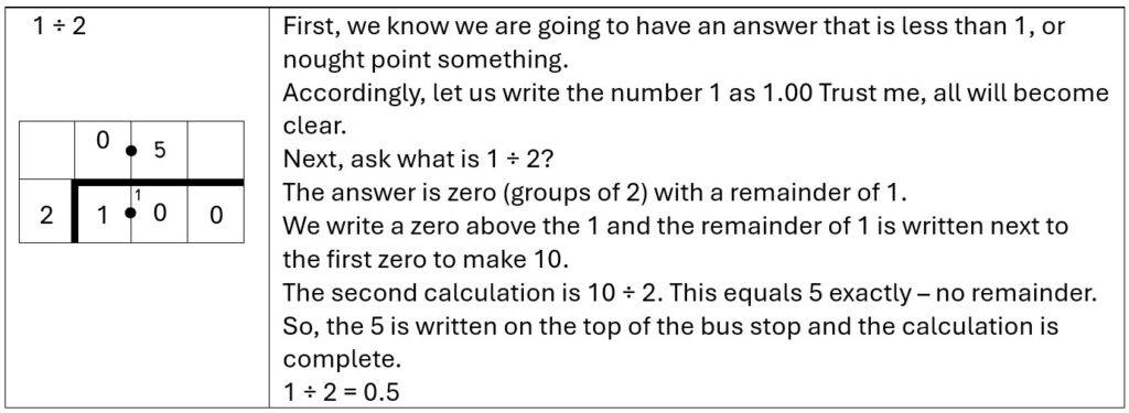 , we can see that a half is 1 divided by 2. Using bus stop method:
