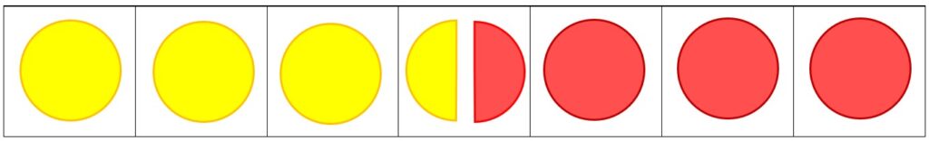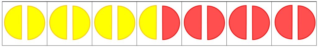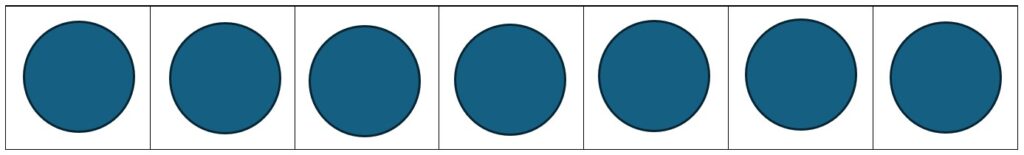 A helpful practice is to work with these numbers in tangible examples. Here, 7 blue discs represent 7 pizzas: